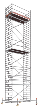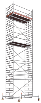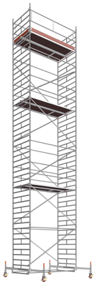 Pojízdné věže Layher UniBreit představují prostorná výšková pracoviště o půdorysných rozměrech 1,5x2,85m. Hliníkové žebříky (šířka 1,5 m) zaručují jednoduchou montáž zasouváním. Zábradlí a diagonály z hliníku se rychle zacvakávají. Pracovní podlážky z hliníkového rámu a překližkové desky pro průlez zajišťují bezpečný vnitřní výstup. Robustní otočná kola s ocelovými vřeteny umožňují nejen rychlý přesun, ale i snadné vyrovnání na nerovném podkladu.
